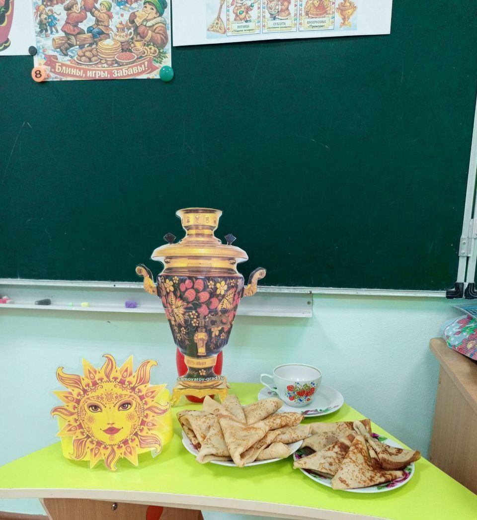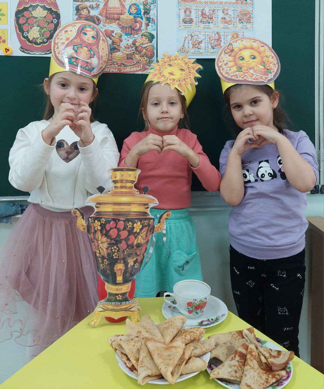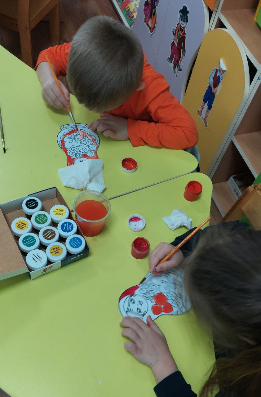 С детьми были проведены беседы о народном празднике, история его возникновения ,культура его проведения и традицией празднования.Был создан тематический уголок «Здравствуй Масленица» . Ребята выступили в роли главных символов этого праздника : блинов и солнца.Также воспитанники выполнили задание -раскраски в виде Матрёшки в Хохломской росписи. Кульминацией данного мероприятия, стало угощение сладкими блинами . Такие тематические занятия приобщают детей к истокам народной культуры и воспитывают интерес к ней.